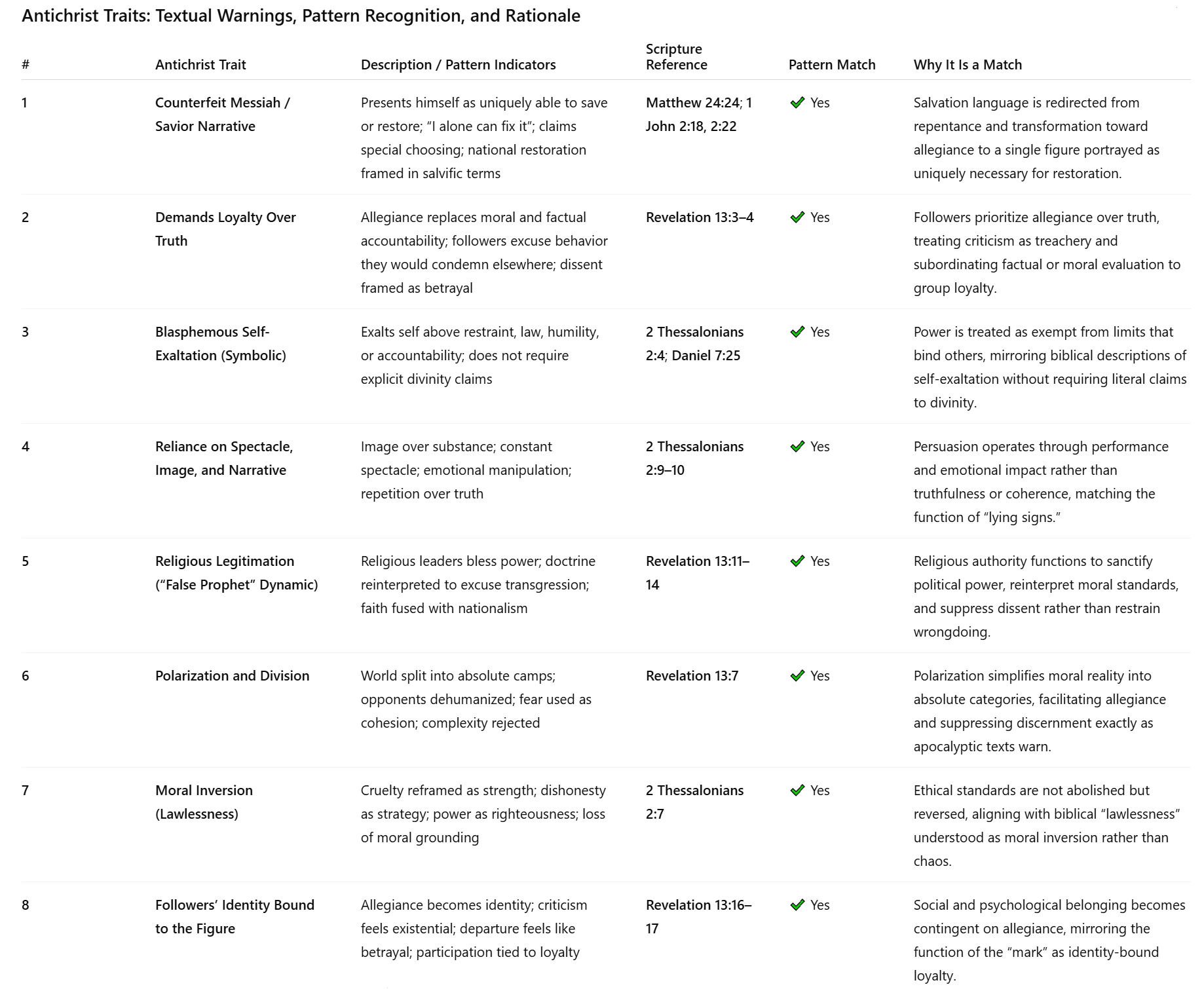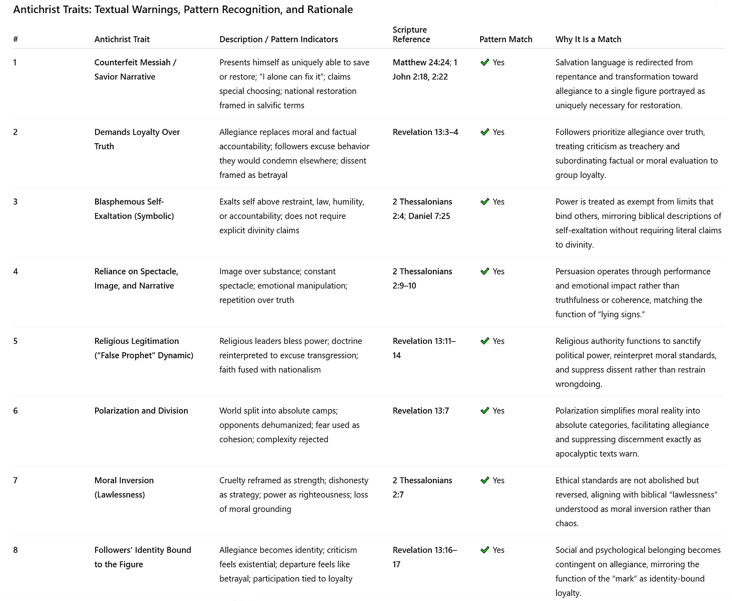 “Does he align with the symbolic, behavioral, and structural attributes traditionally associated with the Antichrist archetype?”